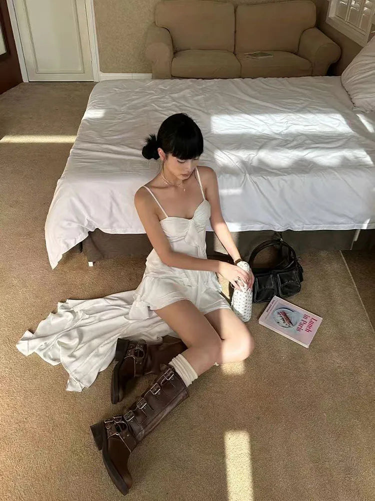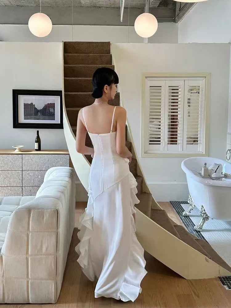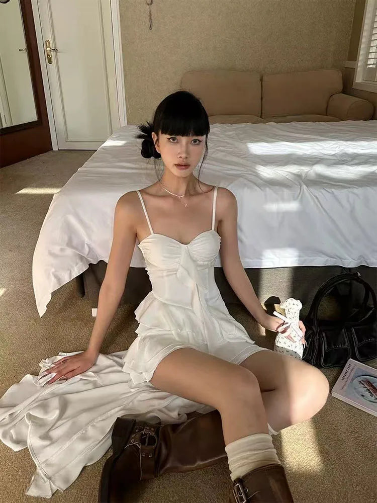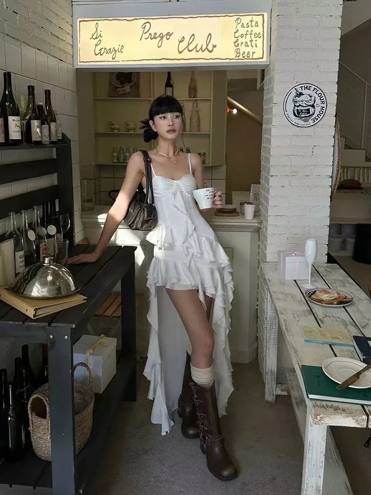 Aesthetic Lace Ruffle Irregular Midi Dress