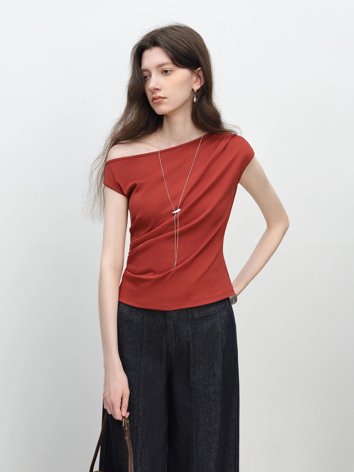 Chic Off-Shoulder Knit Womens T-Shirt