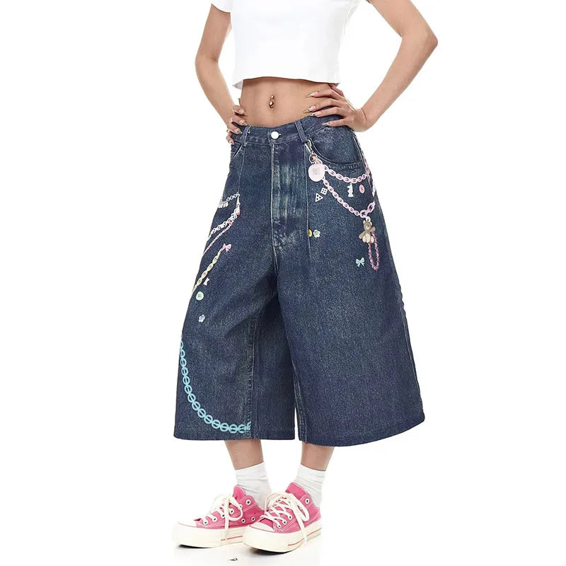 Colorful Chain Print Denim Shorts