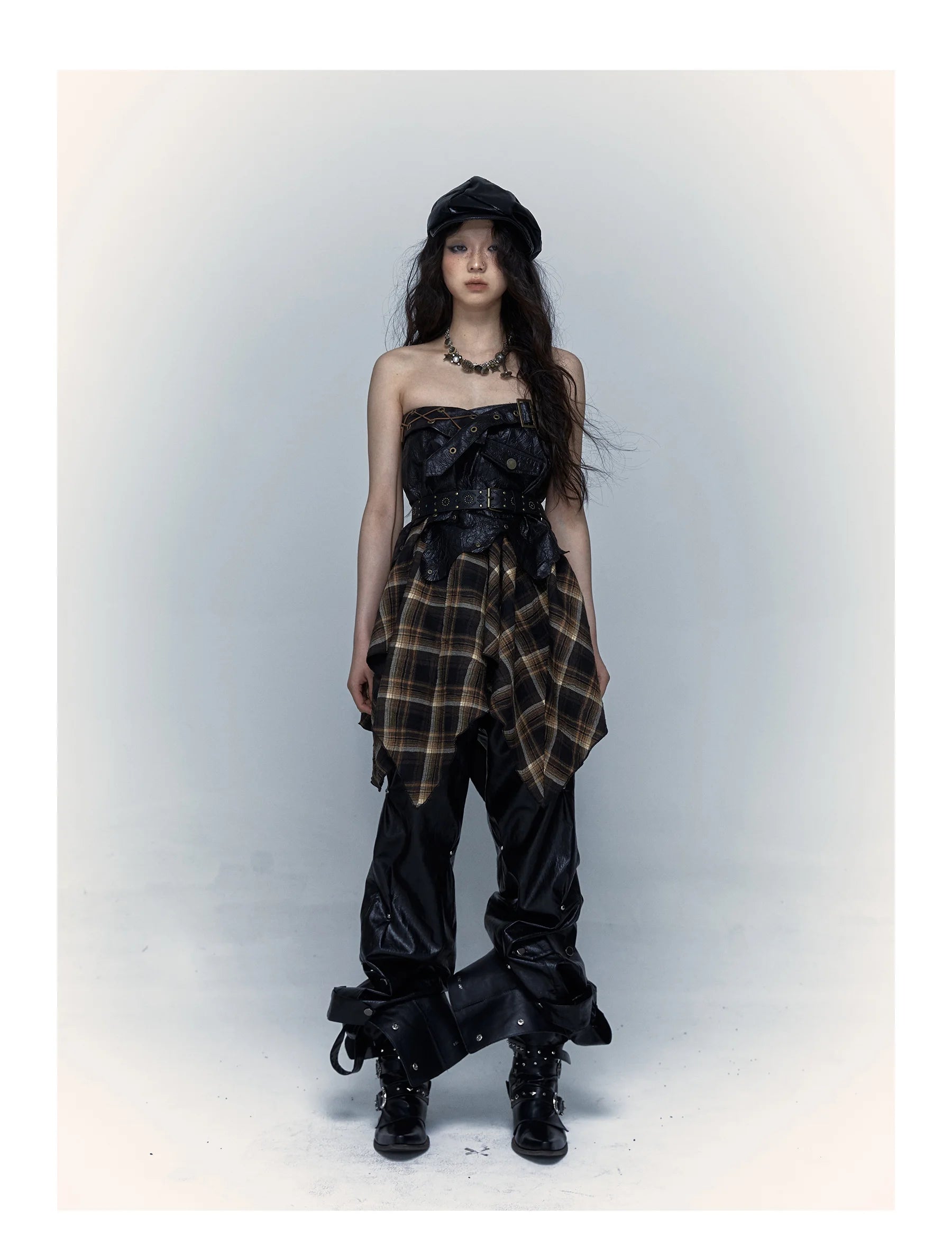 Grunge Aesthetics Plaid Patchwork Skirt Gothic