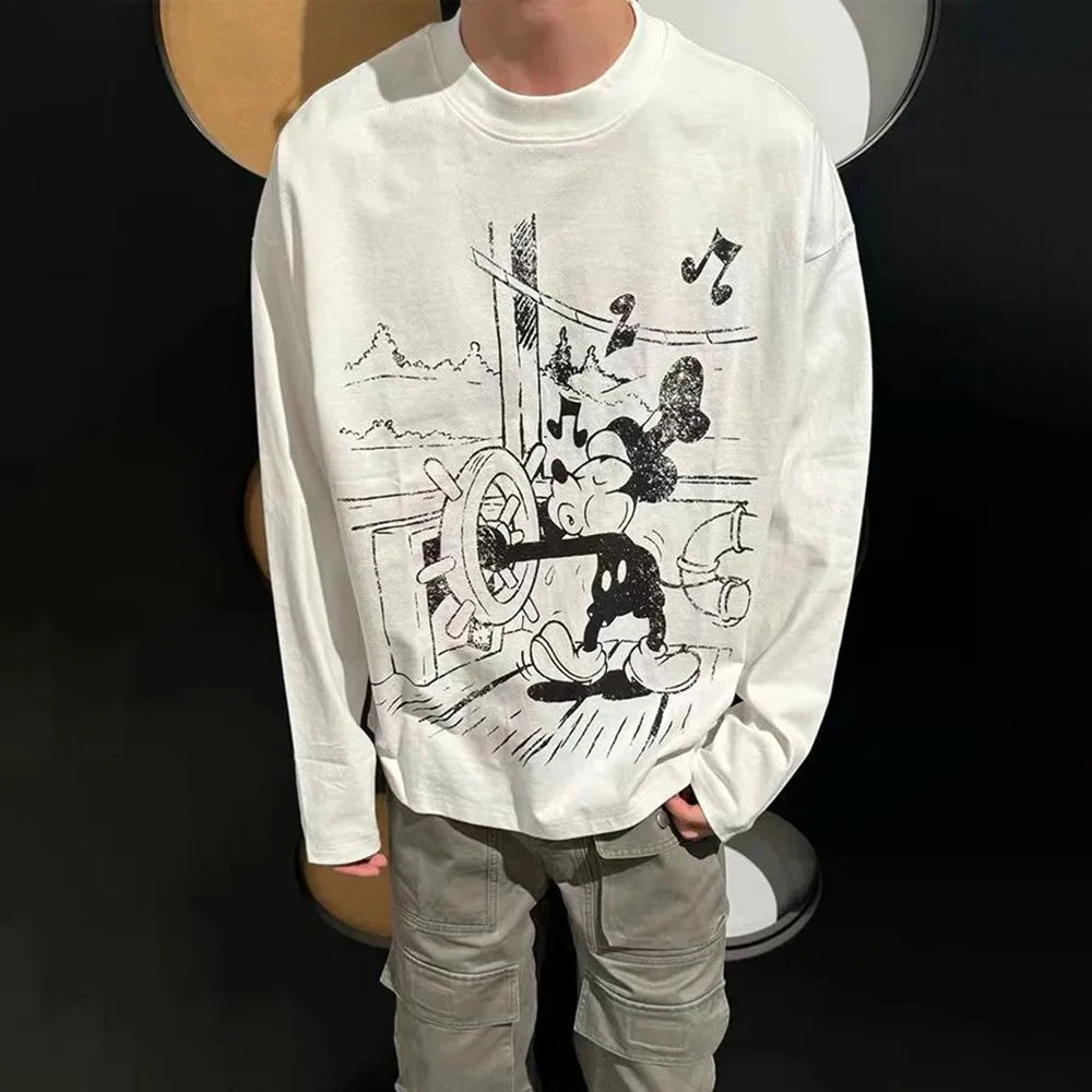 Retro Mickey Cartoon Graphic Long T-Shirt