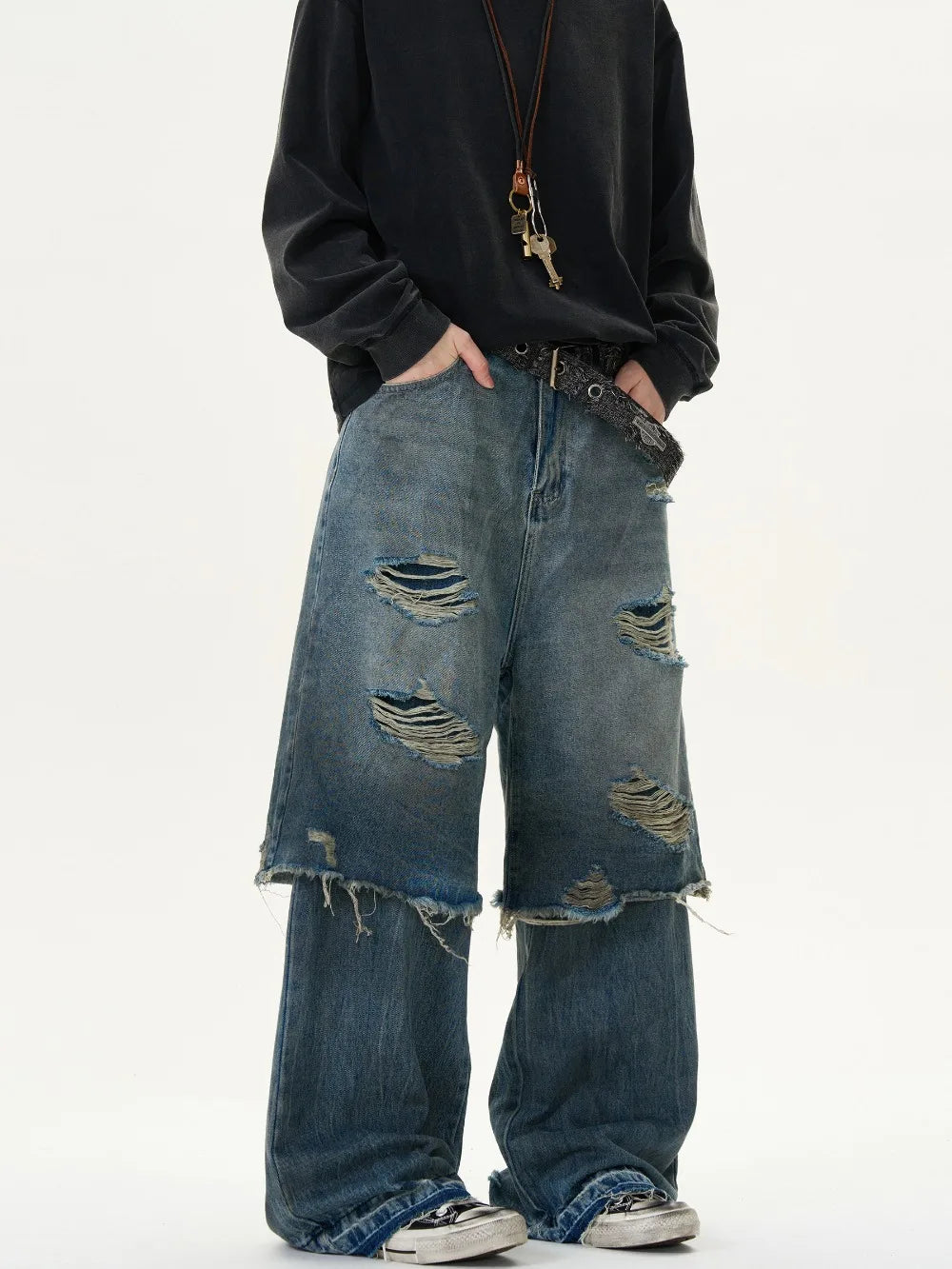 Stacked Fake Two Pairs Ripped Jeans