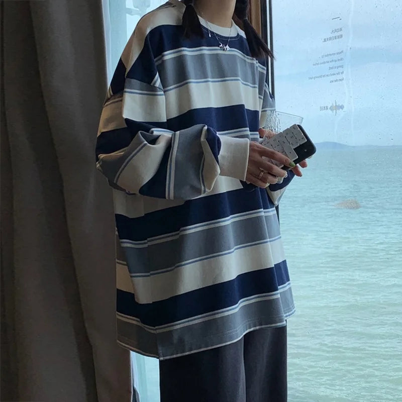 Striped Long Sleeve Cotton Hoodie Shirt