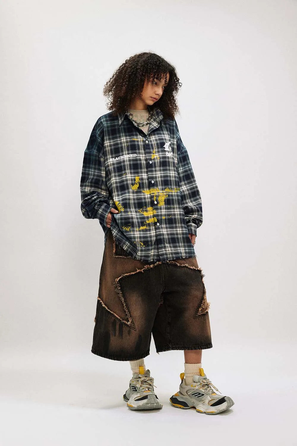 Vibrant Plaid Paint Splatter Shirt