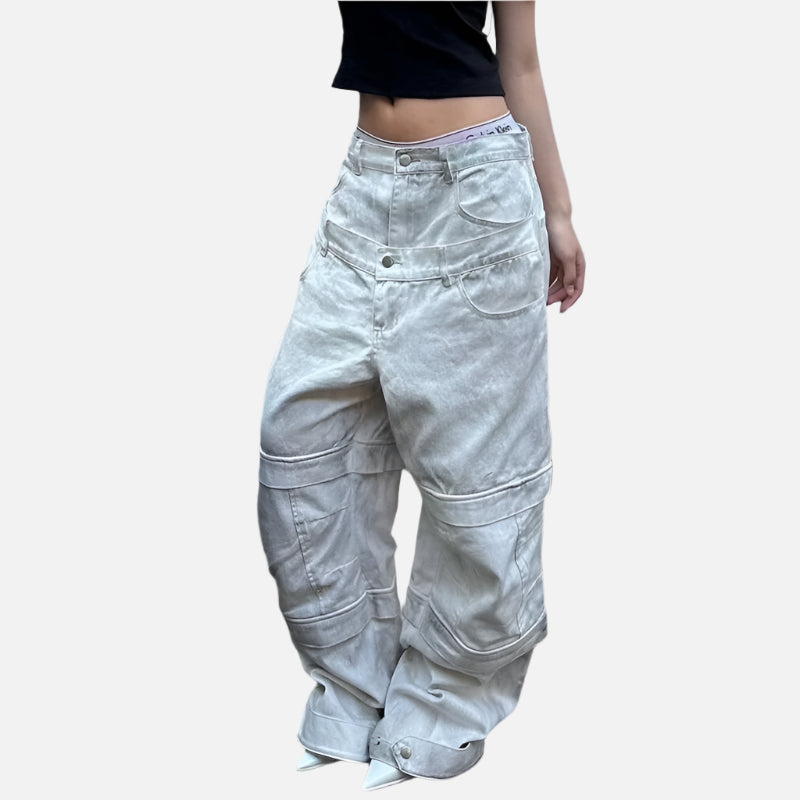 Vintage Beige High Waist Wide Jeans
