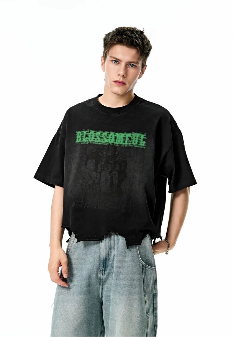 Vintage Distressed Graphic Print Boxy T-Shirt