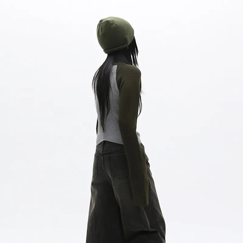Vintage Grunge Patchwork Turtleneck Cardigan Coat