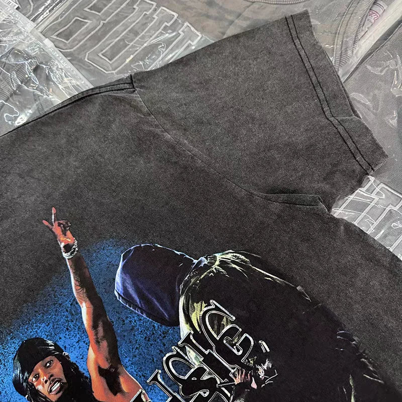 Washed Vintage Rock Singer Print T-Shirt